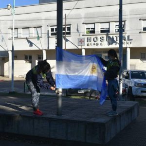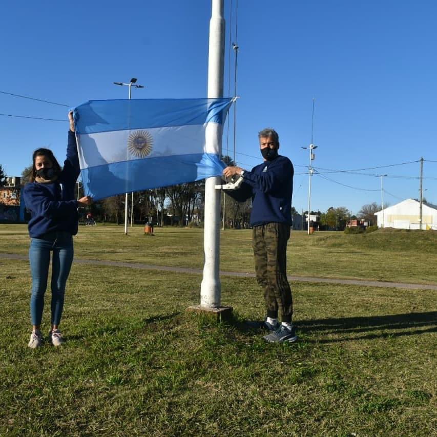 Desde las áreas de Cultura, Servicios Públicos y Deportes llevaron a cabo el cambio de la insignia argentina en diferentes predios ubicados en los distintos puntos de la ciudad. Los mismos contaron fueron La Trocha, Plaza Belgrano, el corralón municipal y en la planta de transferencia de La Florida.