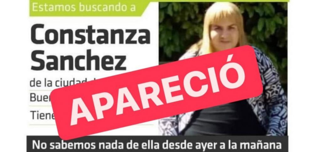 Constanza Sánchez, de 45 años, había desaparecido de su hogar el martes y regresó por sus propios medios el jueves por la noche.