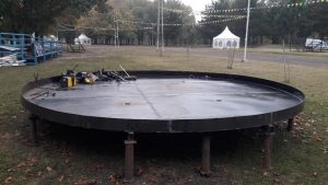 - Hoy mismo comenzó el montaje de la gran sartén donde se cocinará “la torta frita más grande del mundo”. Desde la unidad móvil de exteriores de Meridiano, Juan Carlos Schifini contó que mide 5,15 metros de diámetro, con un borde de 15 centímetros de alto, y que le demandó 28 días de trabajo a Juan Gutiérrez, la persona encargada de construir una nueva dado que la sartén anterior “ya estaba muy quemada”. Para dar vuelta la mega torta frita durante el proceso de cocción se utilizará una grúa. El amasado de las tortas fritas que participen de la competencia comenzará cada día a las 14 hs. y prevén tenerlas listas para las 17 hs.