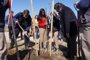 Siempre acompañado por el intendente Juan Ignacio Ustarroz, el virtual ministro bonaerense del área comenzó su recorrida por la ciudad plantando el primer ejemplar de lo que será el Bosque por la Educación, en un área del sector nuevo del Parque Municipal. Dijo allí Sileoni que “este es un acto de la pedagogía y de la política, más que de la botánica, porque la escuela siempre ha estado un pasito más delante de la sociedad; la escuela propone la paz, el acercamiento de las personas, el respeto del medioambiente. Por eso estamos acá plantando árboles, para marcar también de esta forma un camino”.