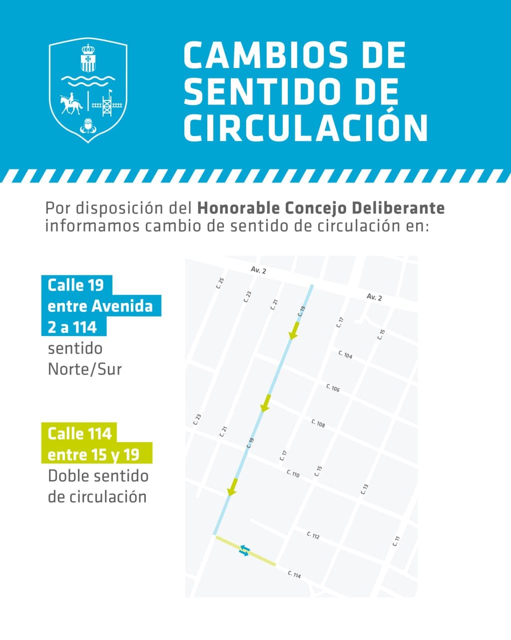 Junto con la modificación en el sentido de circulación de la 19 se puso en marcha también la doble mano en la calle 114 entre 15 y 19. Algunas de las instituciones que se verán favorecida con esta novedad son el Colegio Madre Camila Rolón y la Escuela Parroquial Padre Ansaldo, entre más.
