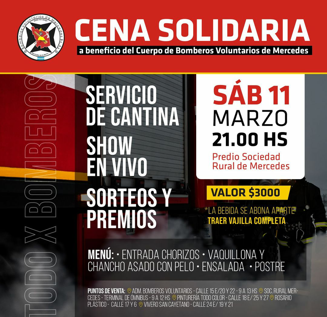 Llega la cena solidaria a beneficio de los Bomberos Voluntarios