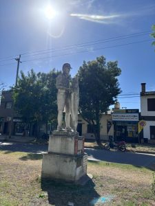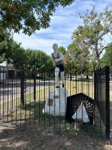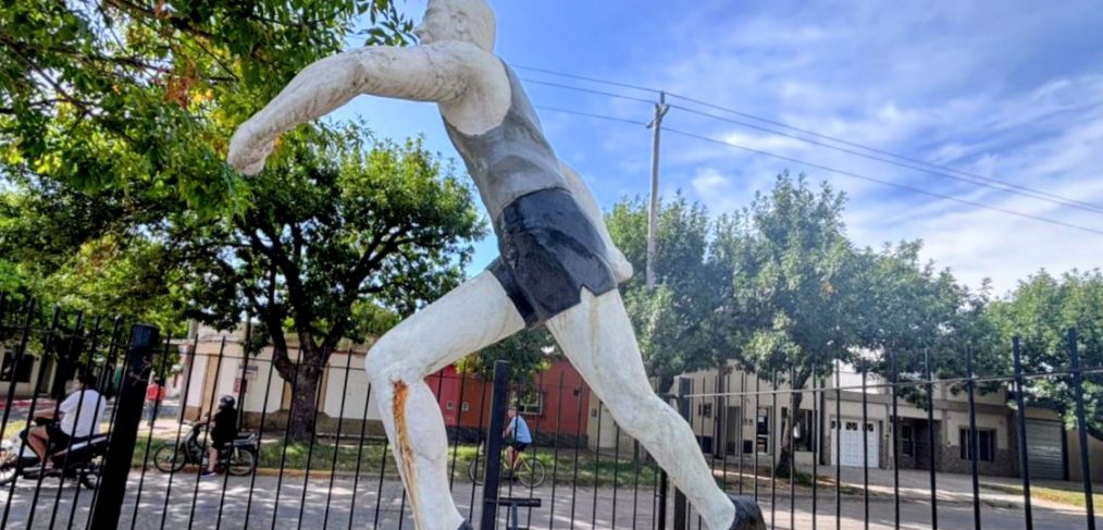 Azar ayudó a colocar una reja baja con candado en torno a la obra (luego de que algún “travieso” le rompiera un brazo) y le entregó una llave a varias personas que viven en las cercanías y colaboran en el corte de pasto y el cuidado del lugar.
