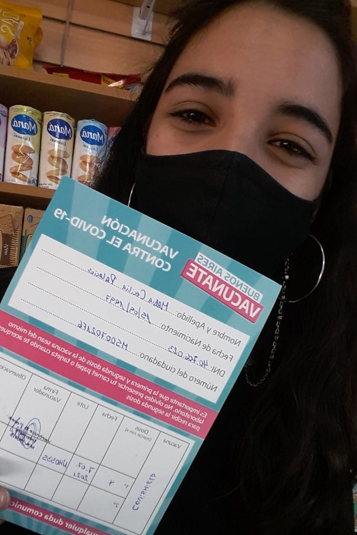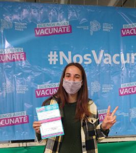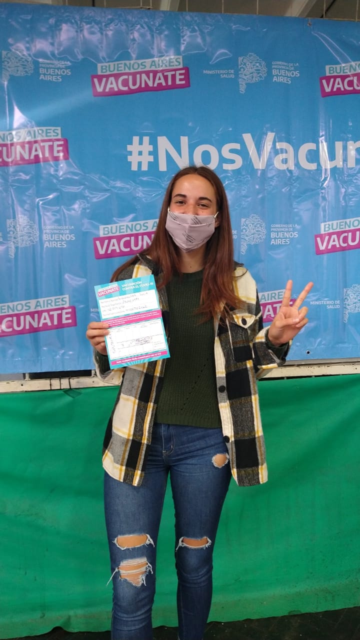 Milena Lettieri, algo ansiosa y esperanzada de que la vacuna podría alivianar la situación sanitaria mundial, se registró en vacunatepba.gba.gob.ar cuando, a fines de 2020, se abrió la inscripción para recibir la vacuna contra el coronavirus: “me anoté en diciembre apenas empezaron”, recuerda Lettieri y agrega: “mis amistades, la mayoría, no quería vacunarse en aquel momento, tenían miedo por lo que les podía pasar. Mis amigos se fueron anotando cuando yo les comenté que me había llegado el turno”.