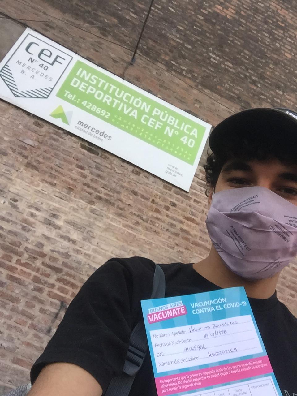 Soy Valentino Rutigliano (23), me inscribí en febrero y recibí el turno el 26/6 para vacunarme el 7/7