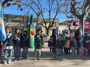 Se desarrolló un acto protocolar con la presencia de autoridades municipales, vecinos y abanderados de escuelas de la ciudad. El intendente Juan Ustarroz encabezó la ceremonia, de la que participó también el exdiputado nacional Carlos Selva.