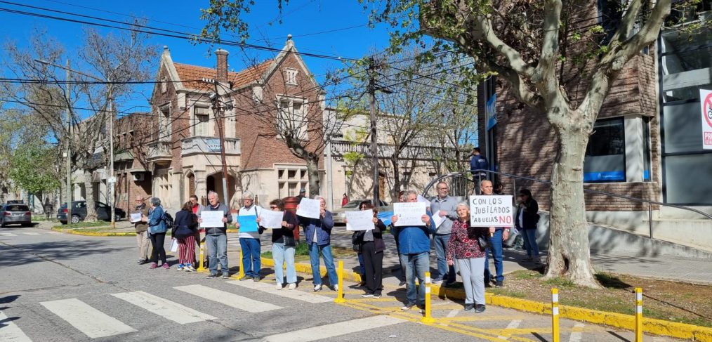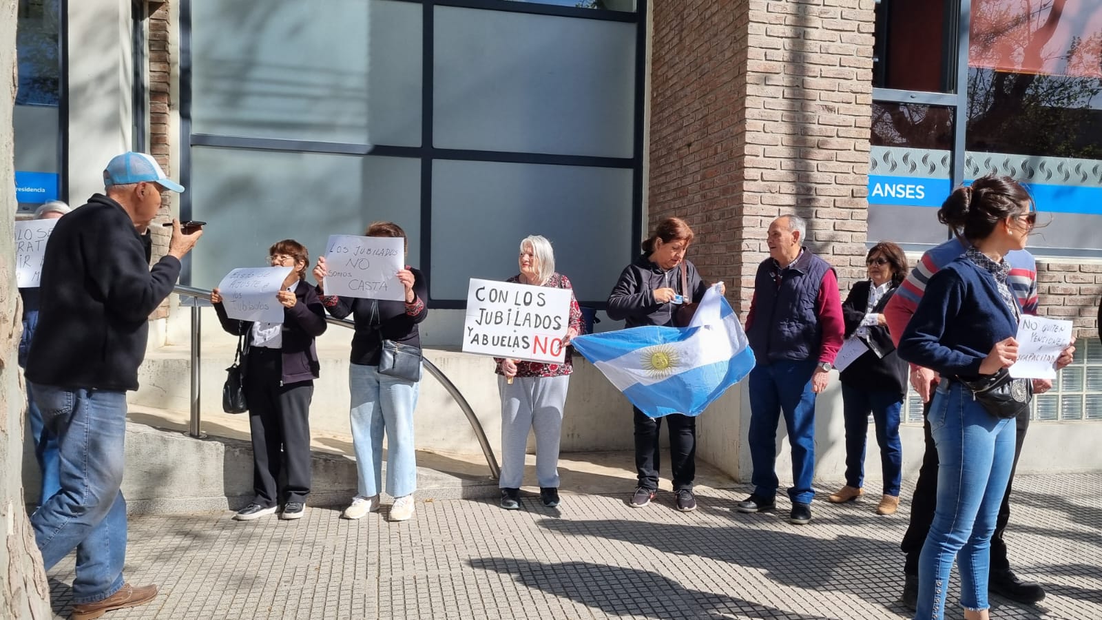 Frente a las oficinas de Anses, en Av. 29 y 34, un grupo de adultos mayores volvió a manifestarse pacíficamente, tal como lo habían hecho ya ante la sede de Pami y en Plaza San Martín.