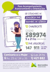 Según indicaba la directora del área, Mercedes no es ajena a la realidad nacional y también existen casos de personas que deben reiterar las denuncias sobre incumplimientos de desobediencia de órdenes judiciales. Sin embargo, comentó, los equipos de géneros destinados para el abordaje de este tipo de problemáticas buscan acompañar a las personas LGTB+ en los procesos de denuncia. “Nosotras no somos la justicia, pero sí acompañamos. Buscamos que sea un abordaje integral”, en referencia a herramientas como el botón antipánico, la mesa de trabajo donde participa el sector judicial, articulación constante con la Comisaría de la Mujeres y guardia activa las 24 horas del día. Sin embargo, dijo “todo tiene que ver con poder responsabilizar y asumir los compromisos que cada quien tiene dentro de su competencia”. Y que “hace falta un trabajo de sensibilización de concientización para erradicar las violencias y la violencia de género en particular.”