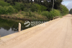El estado del puente conocido como puente amarillo es deplorable. En el lugar también figura un cartel de obra donde se anuncia la refacción del lugar para evitar inundaciones.