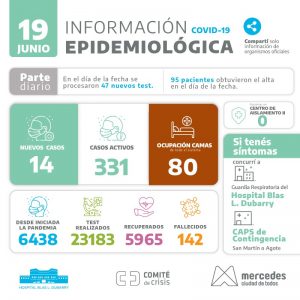 El último parte epidemiológico brindado por las autoridades municipales informó que de 47 test realizados se detectaron 14 nuevos casos de coronavirus y hay un total de 331 vecinos transitando la enfermedad.
