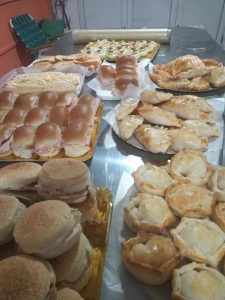 Ofrecen empanadas, tartas, tortillas, milanesas, sándwichs, arrollados, guiso, pollo, papas fritas, pastas y muchas otras cosas más.