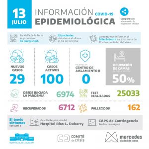 El último parte epidemiológico brindado por las autoridades municipales informó que de 85 test realizados se detectaron 29 nuevos casos de COVID-19 y hay un total 100 vecinos transitando la enfermedad.