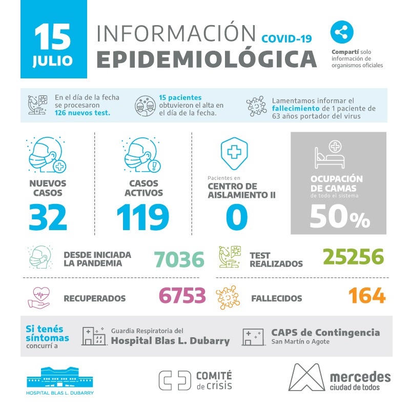 Lamentamos informar el fallecimiento de un paciente de 6 3años de edad portador del virus, que suma 164 decesos desde el inicio de la pandemia.
