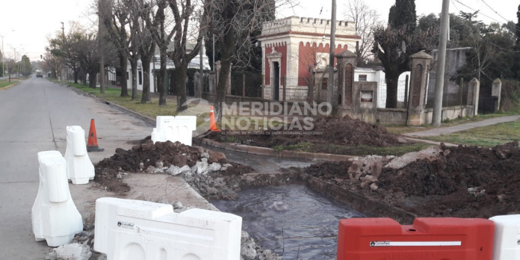 En 35 y 40 continúan trabajando en la zona de la planta de bombeo. Con grandes maquinarias, fue necesario levantar el asfalto para trabajar sobre esta cañería, una de las claves para la red cloacal. Actualmente, es una mini psicina en el medio de la Av. 40.