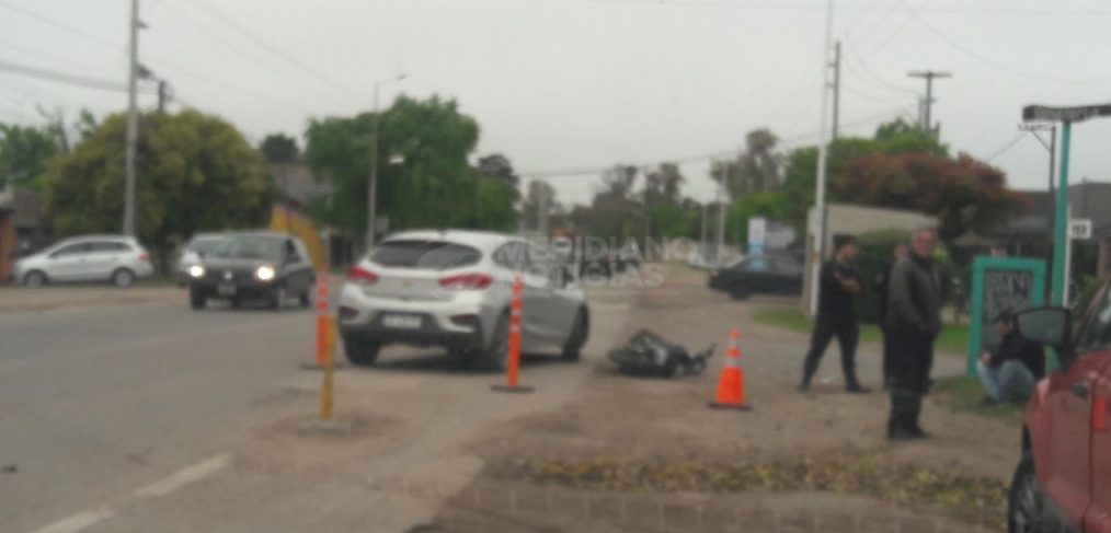Cerca de las 8 30 colisionaron un auto Chevrolet Cruze color gris y una motocicleta en Acceso Sur y 112, sentido hacia el centro de la ciudad. Tras el golpe y por causas que se investigan, el móvil de dos ruedas quedó volcado en la banquina. La personas que conducía el vehículo de mejor porte fue trasladada por el SAME al Hospital Blas L. Dubarry. Al momento no tenemos nuevas noticias de su estado de salud.