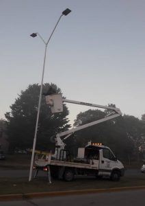 En Av. 1 y 40 todavía trabajaban esta mañana en el reemplazo de la columna dañada, según pudo comprobar la unidad móvil de exteriores de Radio Meridiano.