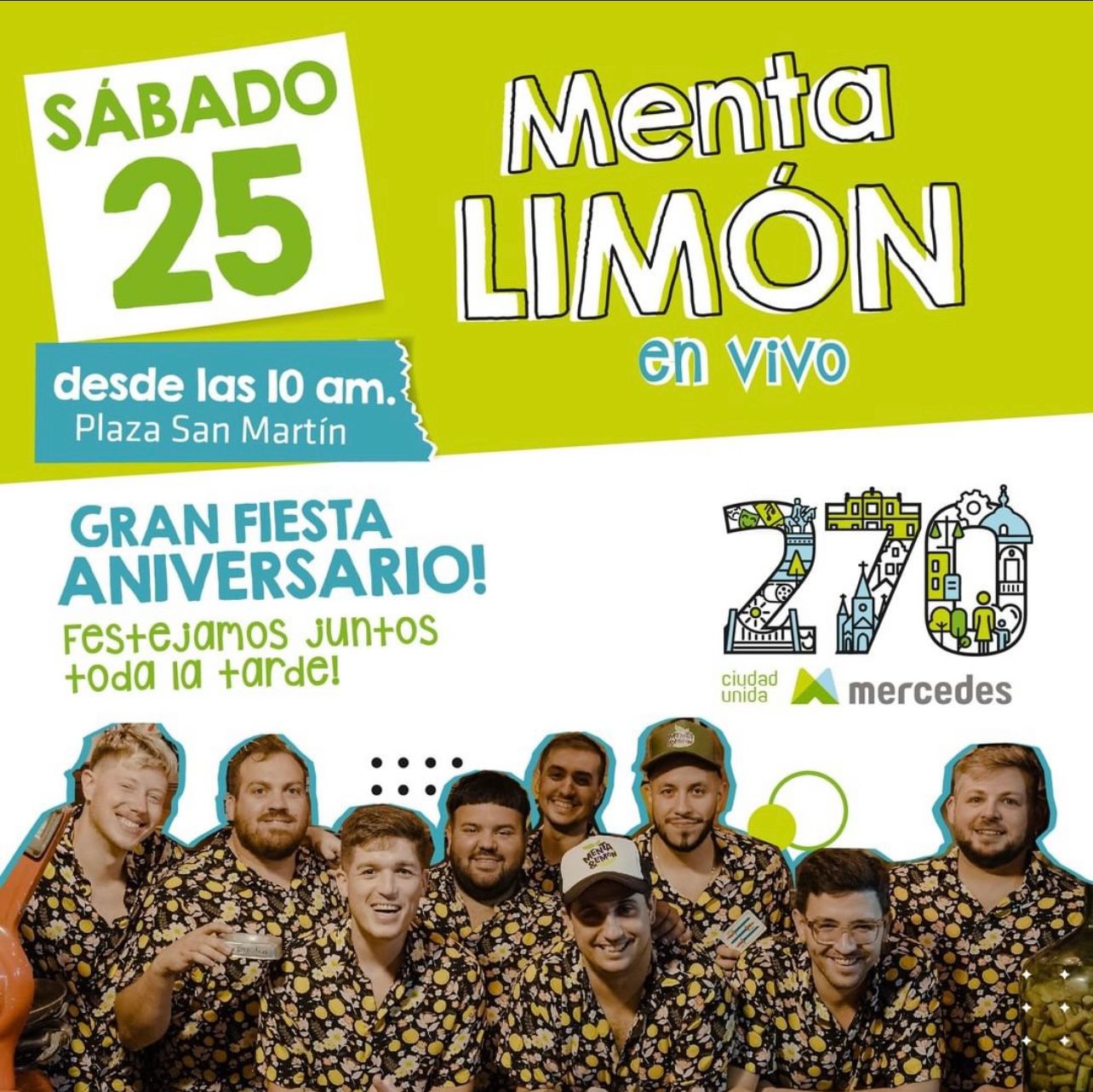 Este sabádo 25 de junio la ciudad cumple 270 aniversarios y desde la Municipalidad organizaron una serie de eventos para festejarlo durante el fin de semana. Todo que va pasar hasta el domingo acá: encuentros artísticos, deportivos, música en vivo con Oscar Rossello, Botija Mujica, Arde Roma, Menta y Limón, DJ Marful y el cierre de El Polaco.