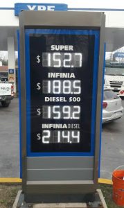 En Mercedes, los valores quedaron fijados en 152,70 pesos para la nafta Súper; $ 188,50 la Infinia; $ 159,20 la Diesel 500; y $ 214,40 la Infinia Diesel.