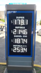 En la estación de servicio de Av. 2 y 29 la cartelera de precios amaneció con cambios. La nafta Súper subió a 173,10 pesos el litro y la Infinia pasó a costar $ 214,60. En el caso de la Diesel 500 el incremento la llevó a valer 187,40 pesos por litro, y $ 233,40 es el nuevo precio de la Infinia Diesel.