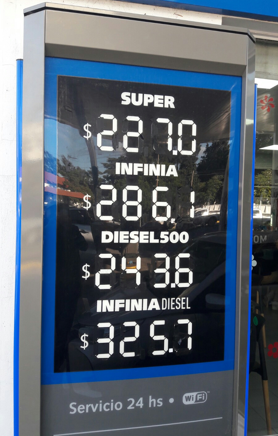A primera hora del día el incremento no había llegado a la estación de servicio YPF ubicada en la intersección de las avenidas 2 y 29, pero ya a las 10 de la mañana la cartelería anunciaba los siguientes precios: