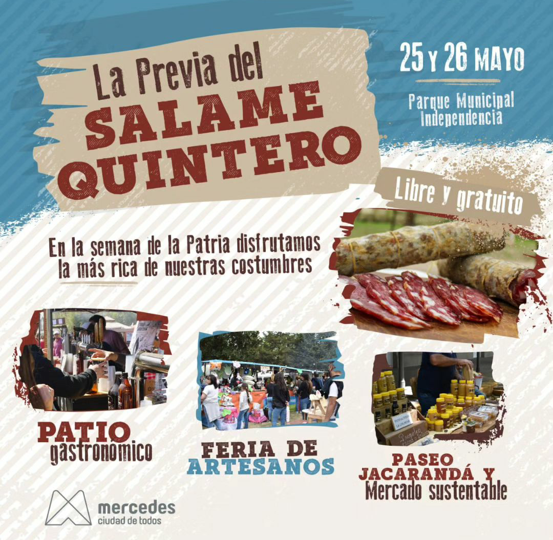 El jueves 25 y viernes 26 la ciudad vivirá un anticipo de una de sus tres grandes Fiestas Nacionales. En el Parque Independencia y con entrada libre y gratuita se desarrollará la Previa del Salame Quintero, con la presencia de productores, feria de artesanos, mercado sustentable y números artísticos locales.