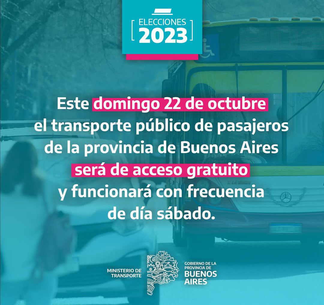 La decisión la adoptó el Ministerio de Transporte bonaerense, que el miércoles comunicó la gratuidad del transporte en toda la Provincia, tal como había ocurrido ya en las PASO. Se dispuso además la frecuencia de día sábado para el servicio de pasajeros en toda la jurisdicción provincial.