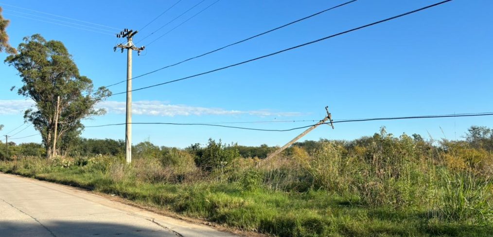 Queda pendiente para más adelante que las columnas sean vueltas a poner en posición vertical para que un eventual corte de los cables que las sostienen no termine interrumpiendo el servicio que la compañía presta a los vecinos de esa barriada mercedina.