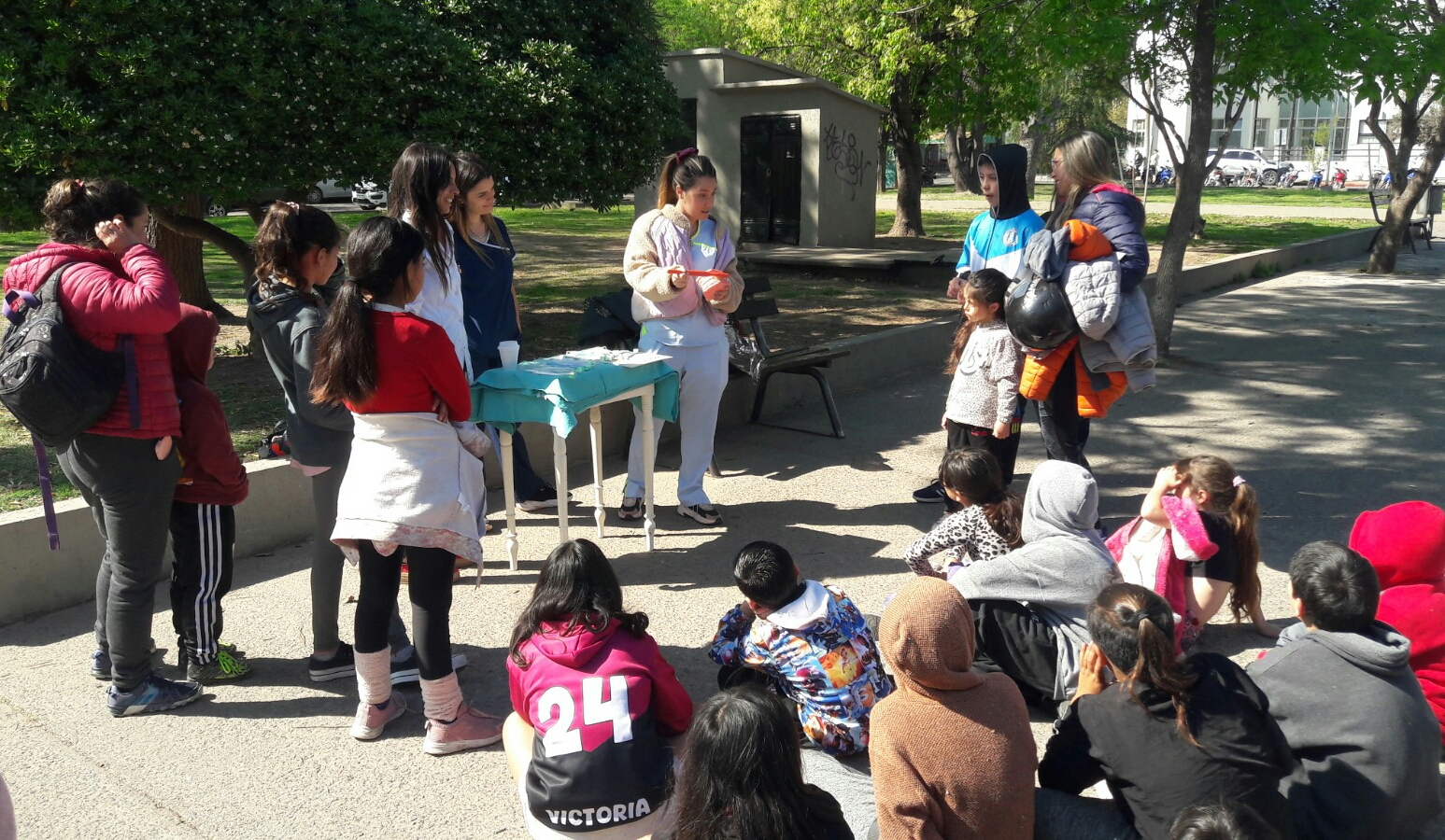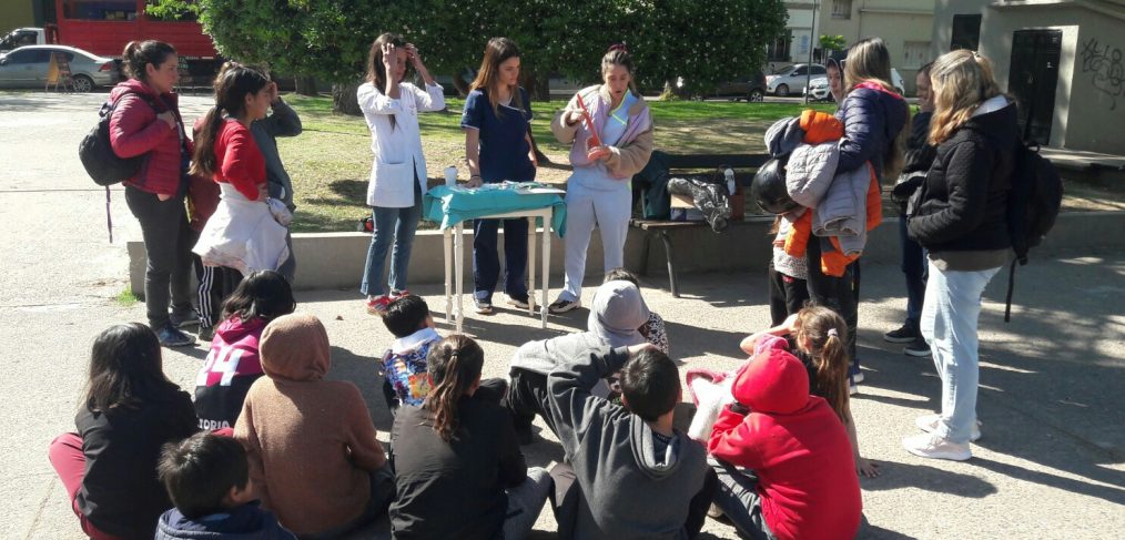 Hubo allí mismo entrega de cepillos de dientes y de folletería. La odontóloga María Emilia Benitez, junto a sus colegas Sol y Florencia, estuvieron a cargo de la actividad, de la que participaron asistentes a la Casa del Niño y otros que de manera circunstancial transitaban por la zona.