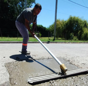 El equipo de hormigón municipal trabaja además por estas horas en la pavimentación de siete cuadras en el barrio Tedo y en la construcción del nuevo anfiteatro municipal en el Complejo Cultural La Trocha.