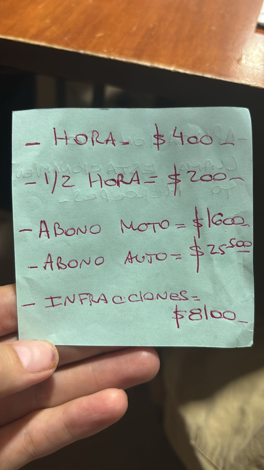 Ahora se deben pagar 400 pesos por hora y $ 200 la media hora de estacionamiento, tanto en el caso de los autos como de los motovehículos. Para las motos, el abono mensual cuesta 1.600 pesos, en tanto que el abono para los autos se ubica en $ 25.500.