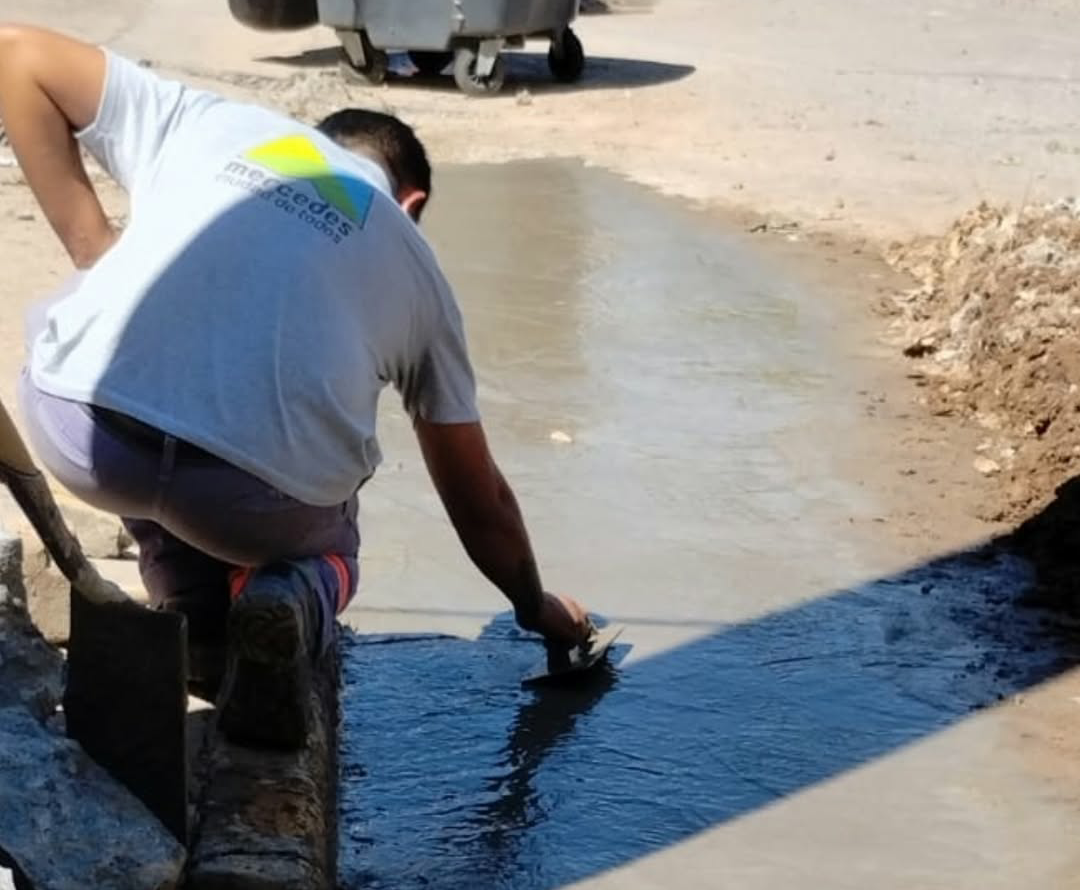 En Av. 29 entre 42 y 44, obreros municipales cavan en la mano que va hacia el centro de Mercedes, para el reemplazo de cañerías cloacales.
