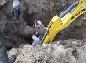 El equipo de Servicios Públicos intervino el jueves por la tarde en una gran cañería de distribución de agua situada en cercanías del predio de Agua Corriente. El problema quedó superado.