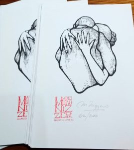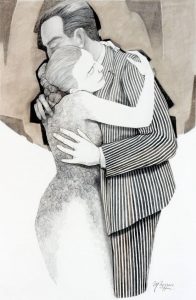 En los dibujos puede verse a una Eva “volando desde el interior del país al Centro con su cabello suelto, o con un rodete lleno de niños. Si bien Evita convoca a la mujer militante, no está presente en mi obra su relación con la sociedad burguesa y oligarca, pero sí su compromiso social”, aclaró.