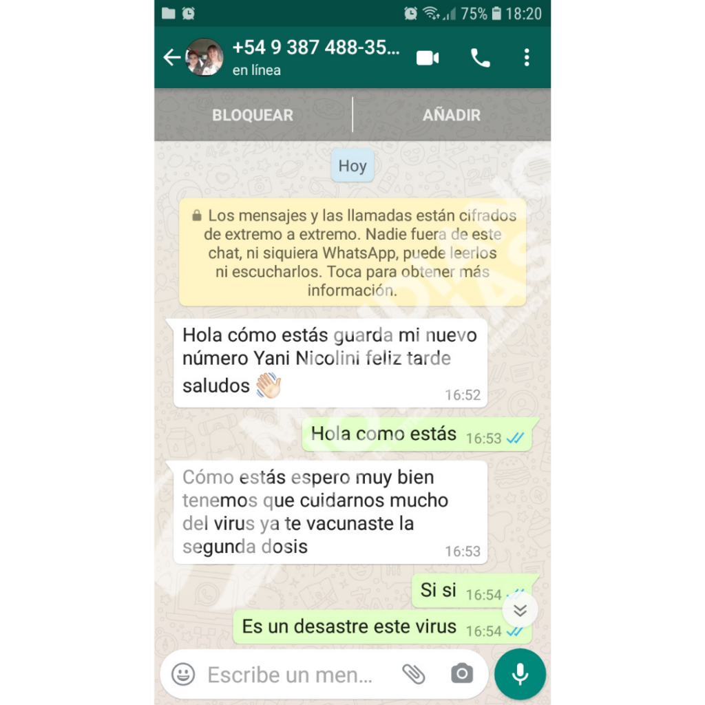 En el día de ayer, Yanina Nicolini fue víctima de robo de identidad digital (pishing en inglés). El delito consiste en enviar a todos los contactos un mensaje haciéndose pasar por la víctima notificando de un supuesto cambio numérico. En el mensaje, que incluye la foto de Yanina y simula establecer una conversación amistosa, termina ofreciendo dólares disponibles para vender.  Uno de sus contactos cayó en el engaño y depositó una suma de alrededor de $500 mil pesos.